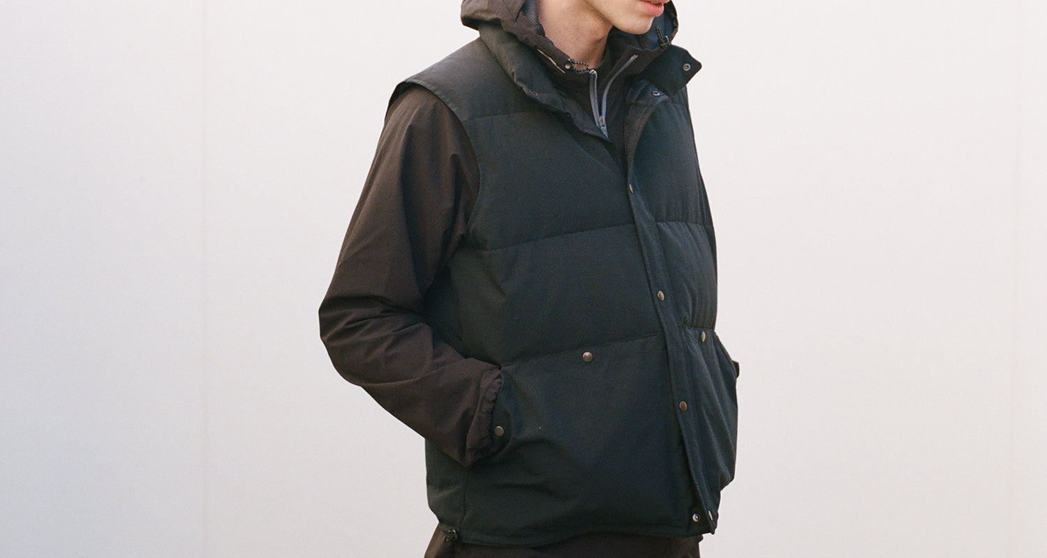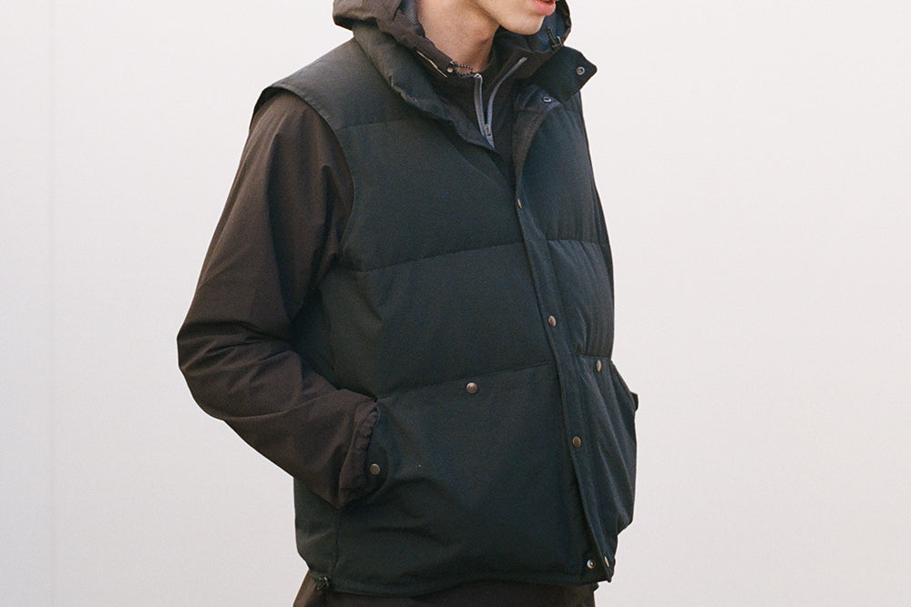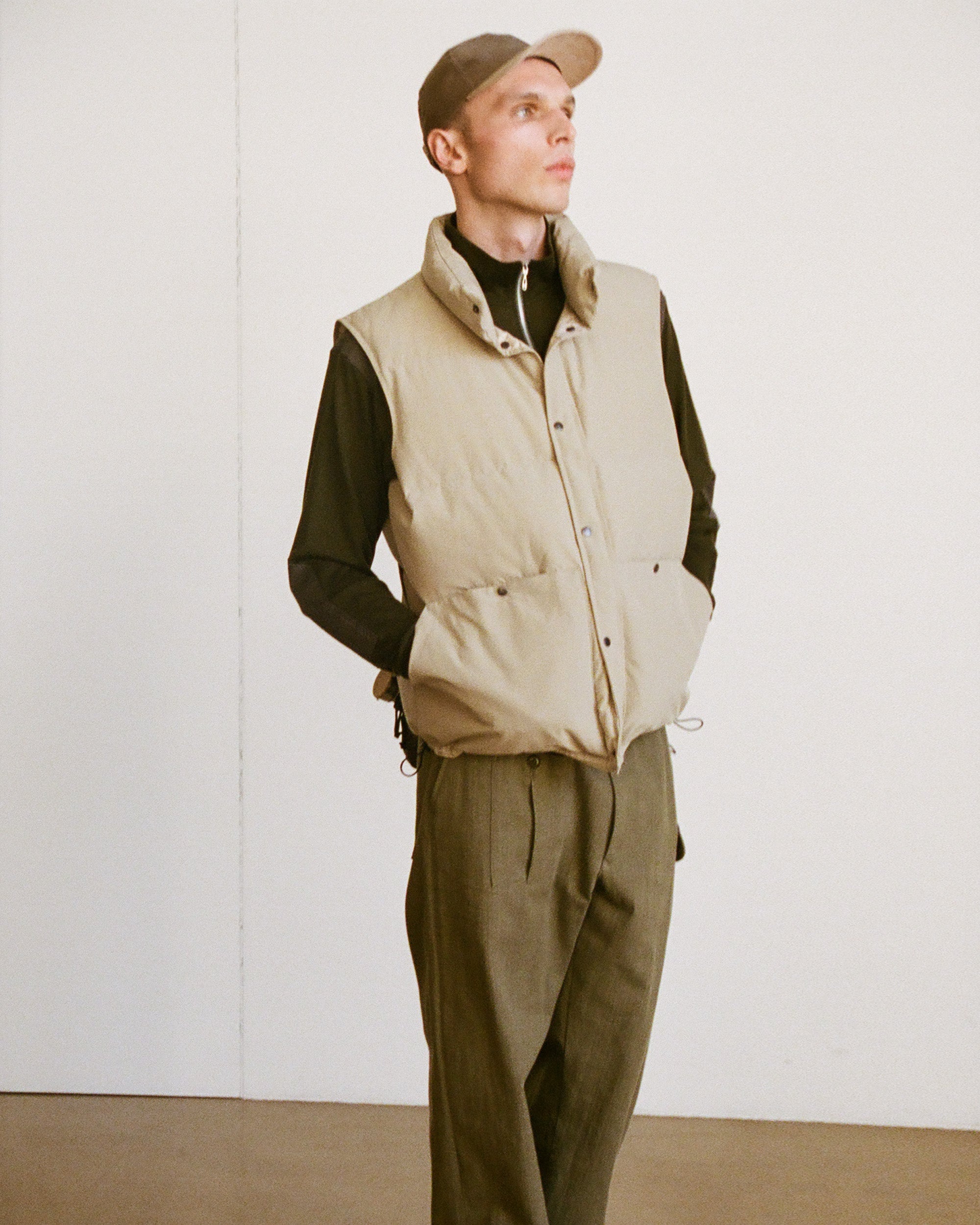 ハイゲージニットなどの上に着用すれば、都市部を歩く分にはちょうどいい温かさをキープ。レイヤードしやすいサイズ感のため、さらに寒い日にはローゲージニットを合わせたり、アウターの上からも着用したりと、十分に身体を温めながらベストならではのスタイリングを味わえます。