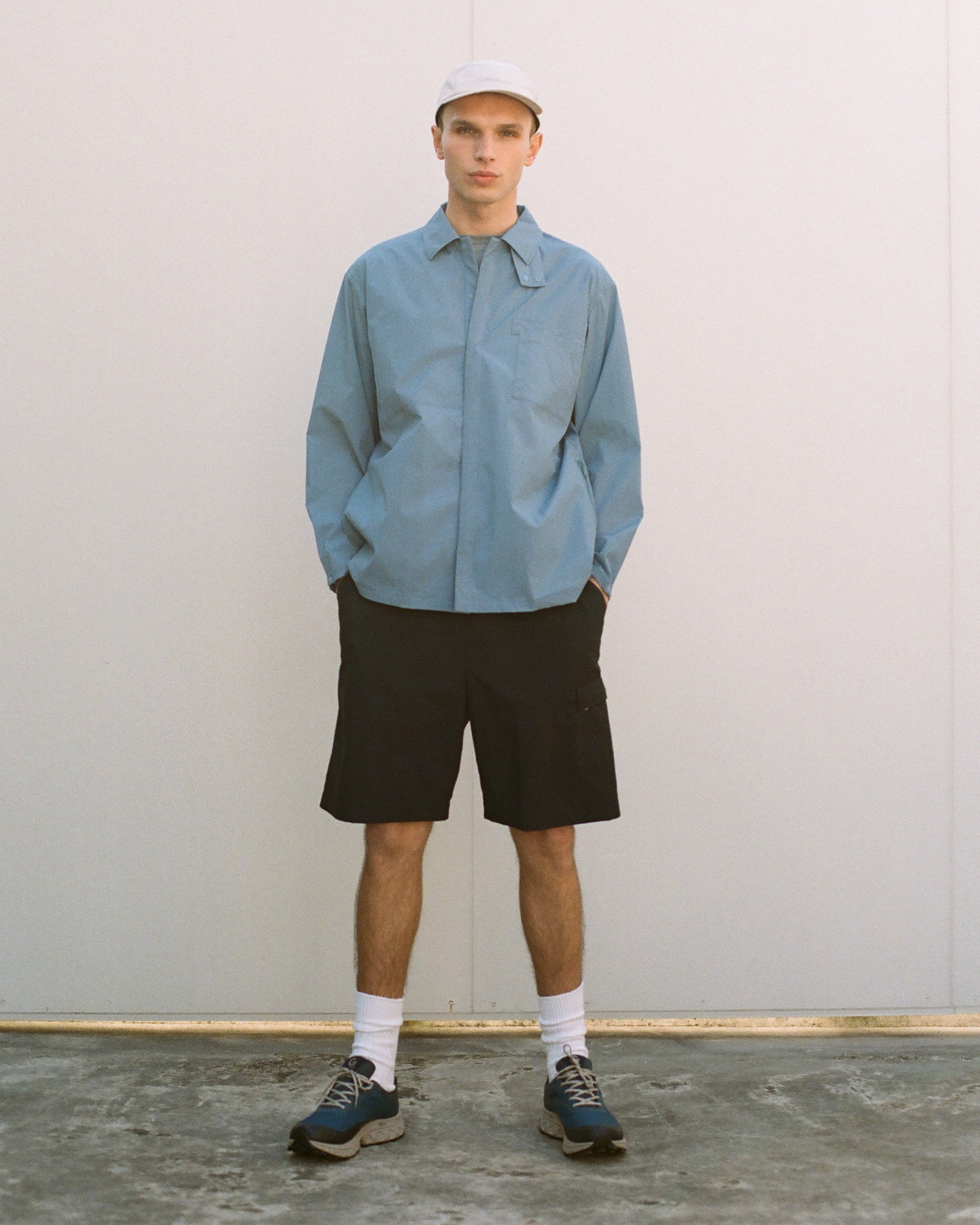 イギリスのビンテージカバーオールをデザインソースに、機能的な生地と仕様を施したシャツジャケット。 ゆったり大きめなシルエットやストレッチの効いた軽い生地などにより、動きやすさのあるカバーオールに仕上がっています。シャツとアウターの中間的なアイテムで、ジャケットのように羽織っても使える汎用性の高さが魅力。肌寒い気候にも、日差しの強い日にも活躍します。