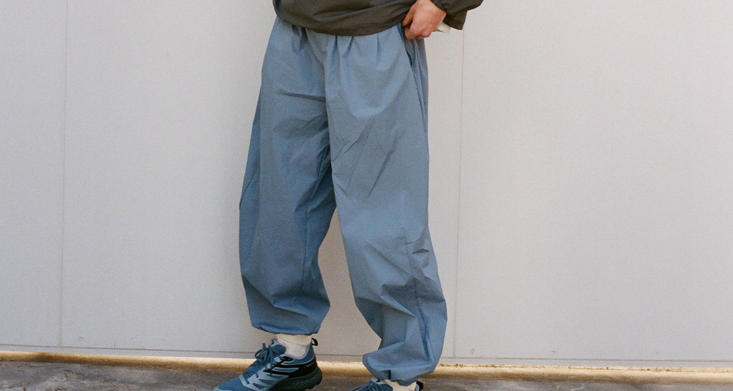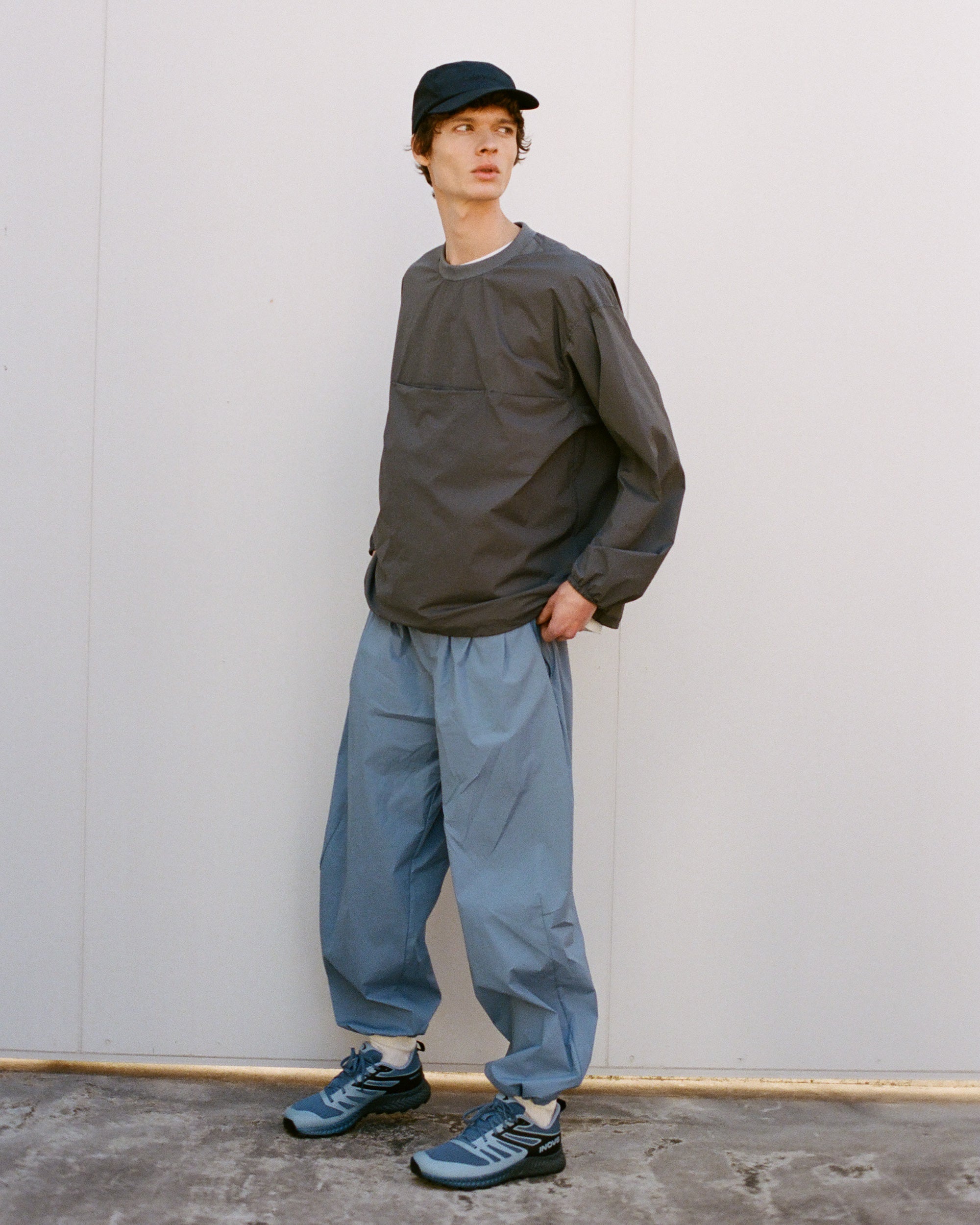 同素材のLightweight Packable Smockと合わせた機能性重視のスタイル。ゆとりがありながら、サイドに入ったダーツにより、スッキリとした絶妙なシルエットを生み出しています。軽量で撥水性のある生地のため、梅雨シーズンには毎日でも穿きたくなるほどの着心地。さらに、真夏の強い日差しから肌を守るために着用しても、風抜けが良く快適に穿ける一本です。