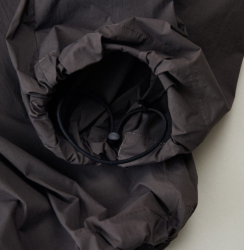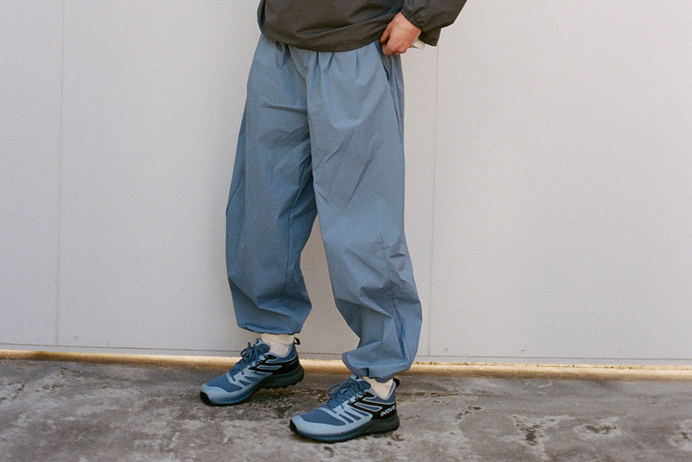 裾はドローコード付きのイージーパンツ仕様。靴に合わせて裾を調整できるだけでなく、絞ったコードが内側に収まるようにタブを配備しているため、歩行時にどこかにひっかけてしまう心配もありません。また、長い時間をかけて歩いた際は、体温上昇によりかいた汗が内側にこもってしまいますが、コードを解放するだけで風抜けが良くなるので、こもった熱をスムーズに逃し、気持ちよく歩くことができます。