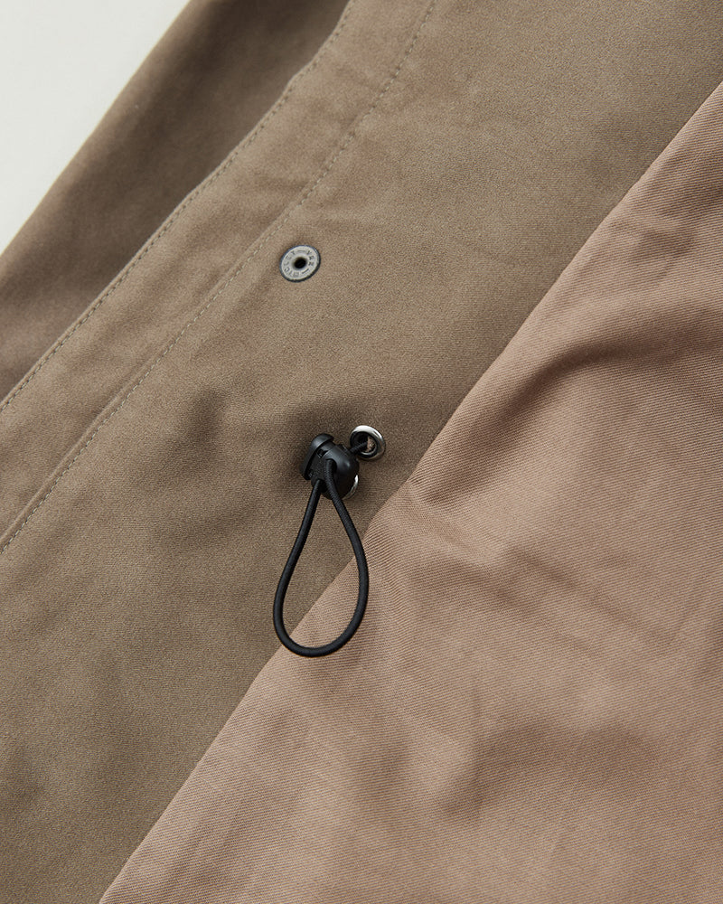 ウエストにも配備されたドローコードを絞ることで、フィット感を高めて保温効果をもたらすと共に、シルエットにも変化をつけられる一石二鳥のディテールです。
