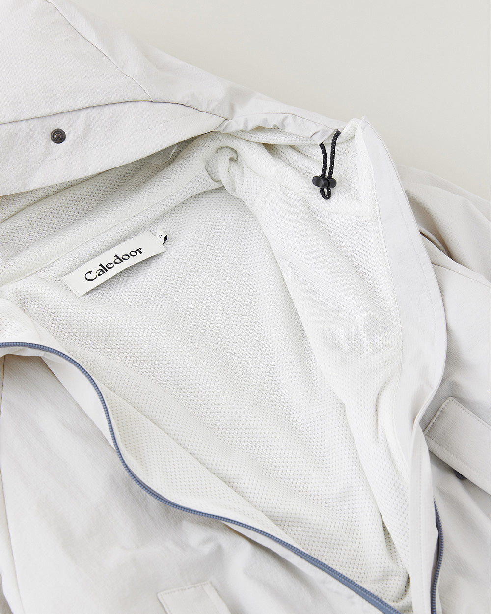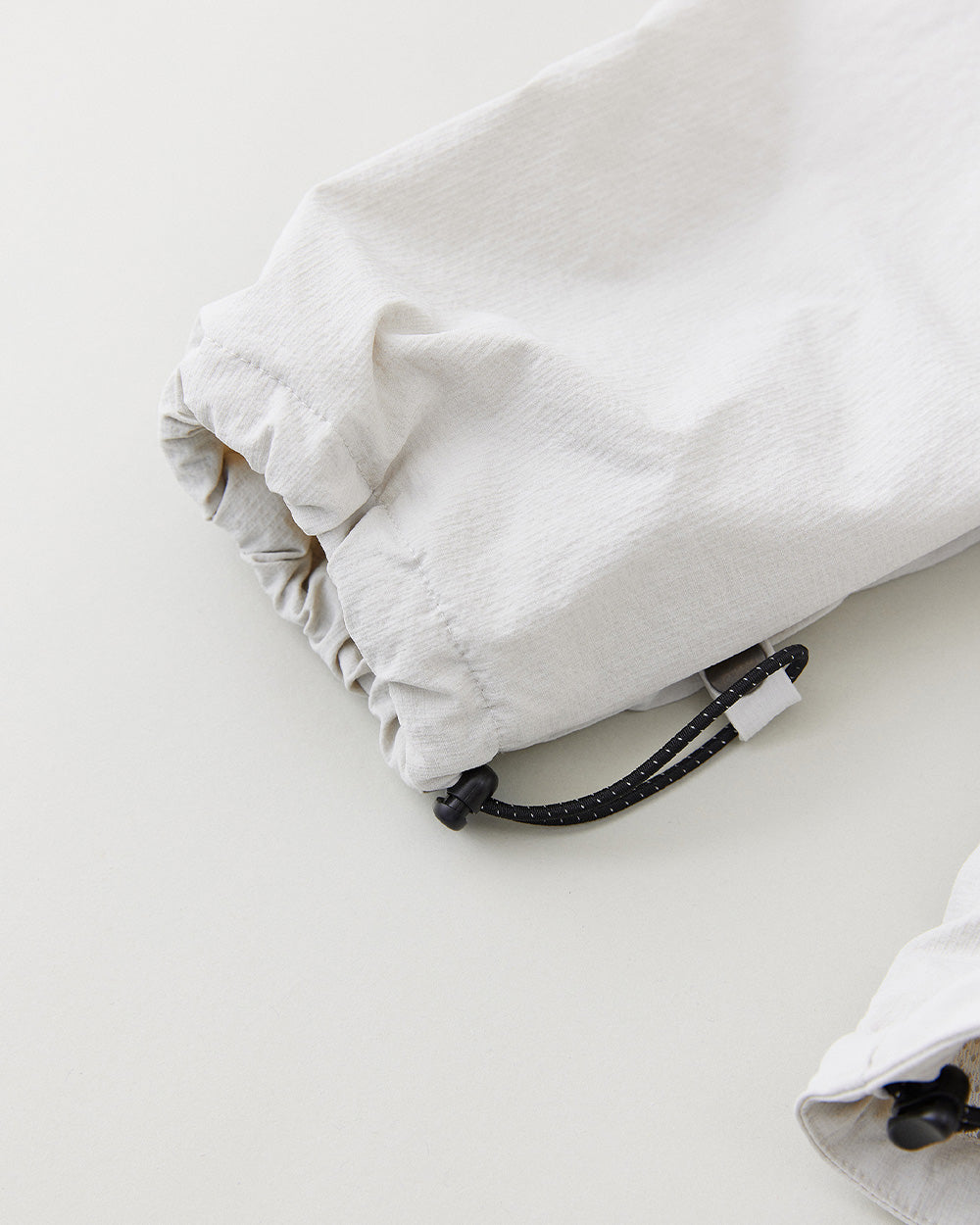 さらに保温力を高めるために袖口と裾にもドローコードを配備し、風や雨の侵入を防ぎ、必要に応じて着