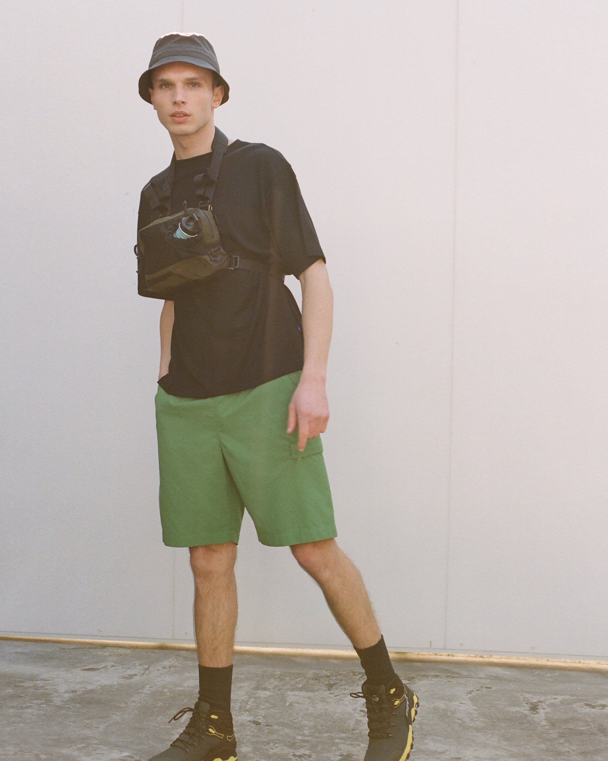 夏といえばランブリングに限らず、キャンプやレジャーなどアクティビティの全盛期。運動による大きな動作に加え、汗や汚れなどによって洗濯頻度もあがることは必然。そのようなヘビーユースに耐えうる丈夫さも、このシーズンアイテムには必須です。ネック部分には、ガゼットを配するなど要所で強度性を確保するほか、ポリエステル混の生地のためシワ、ヨレをある程度防いでくれます。