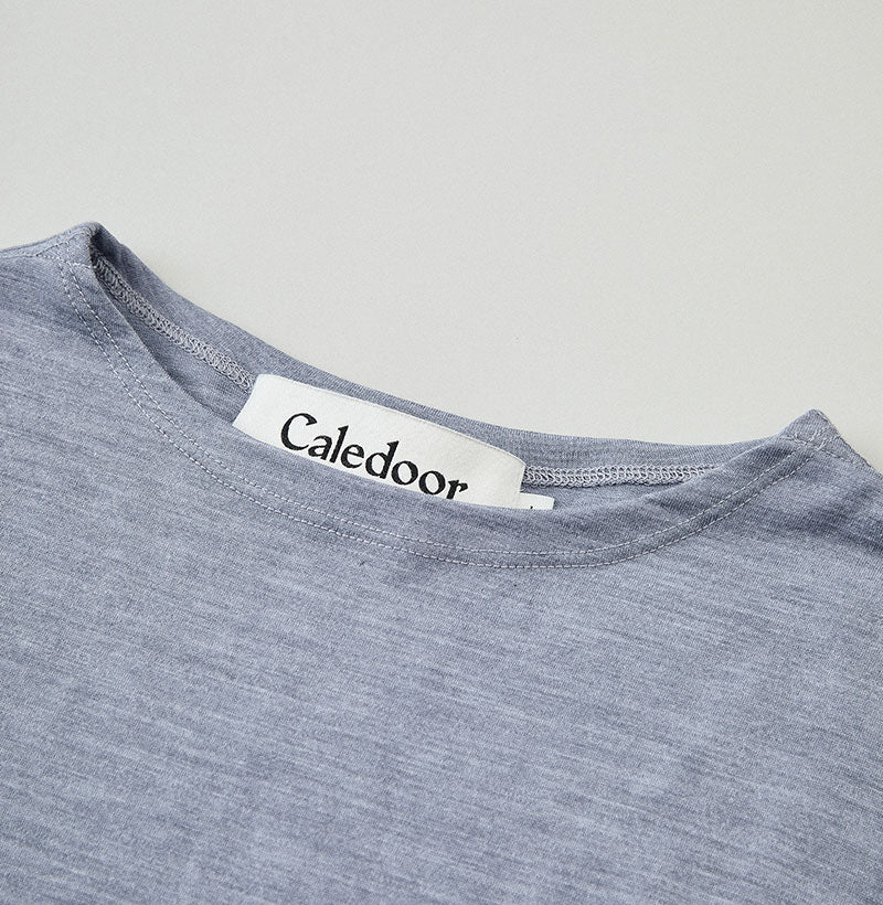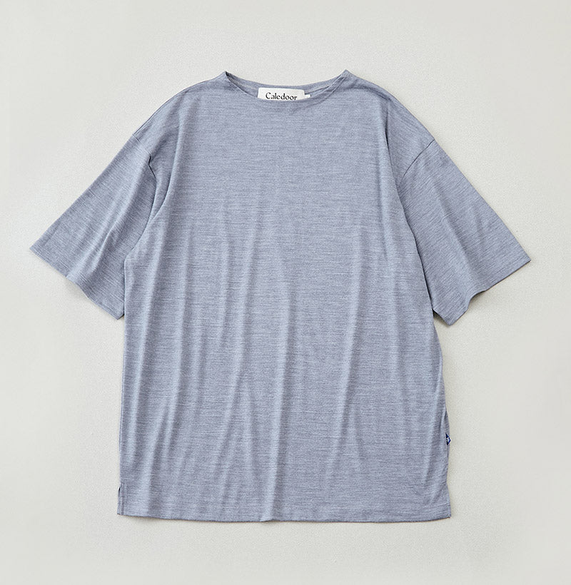 カレドアーが通年着用を提案するベースレイヤーの「メリノウールTシャツ」に、機能素材をブレンドした「サマーメリノウールTシャツ」。天然素材が持つ上質な表情と温度調節、抗菌作用に加え、ポリエステルの通気性、強度向上などの機能性を兼ね備えており、特に気温が高くなる夏のランブリングに最適な1着です。また、ボートネックデザインは清涼感、程よい抜け感を与えることから日常着として違和感なく溶け込めます。このように機能×デザインを両立したアプローチもカレドアーの得意とするところです。