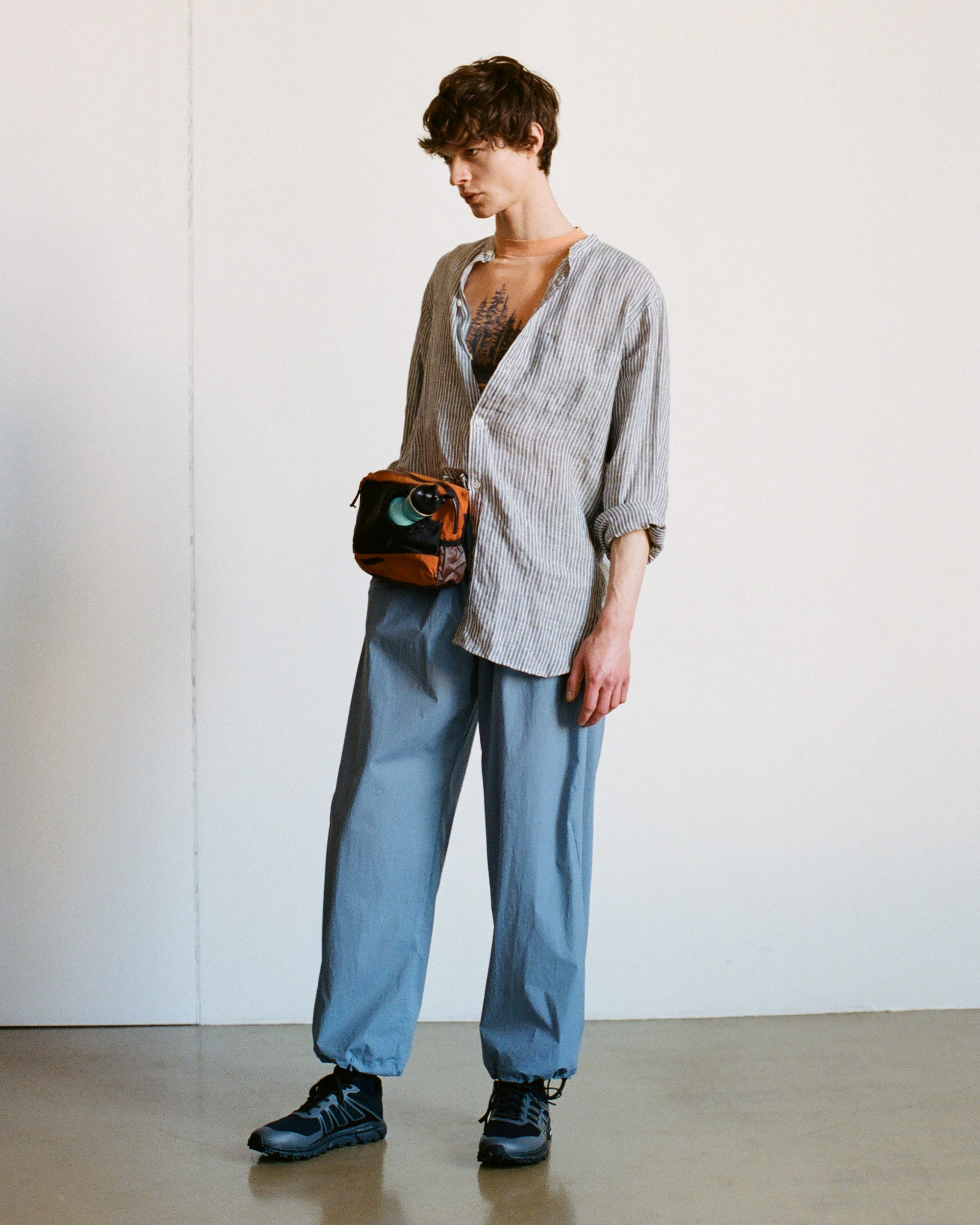 コットンライクな素材感を持つ生地に仕上げているため、リネンシャツなどのシティーウェアや、ナイロンパンツなどの機能素材アウトドアウェアなど、幅広いコーディネートに合わせられます。